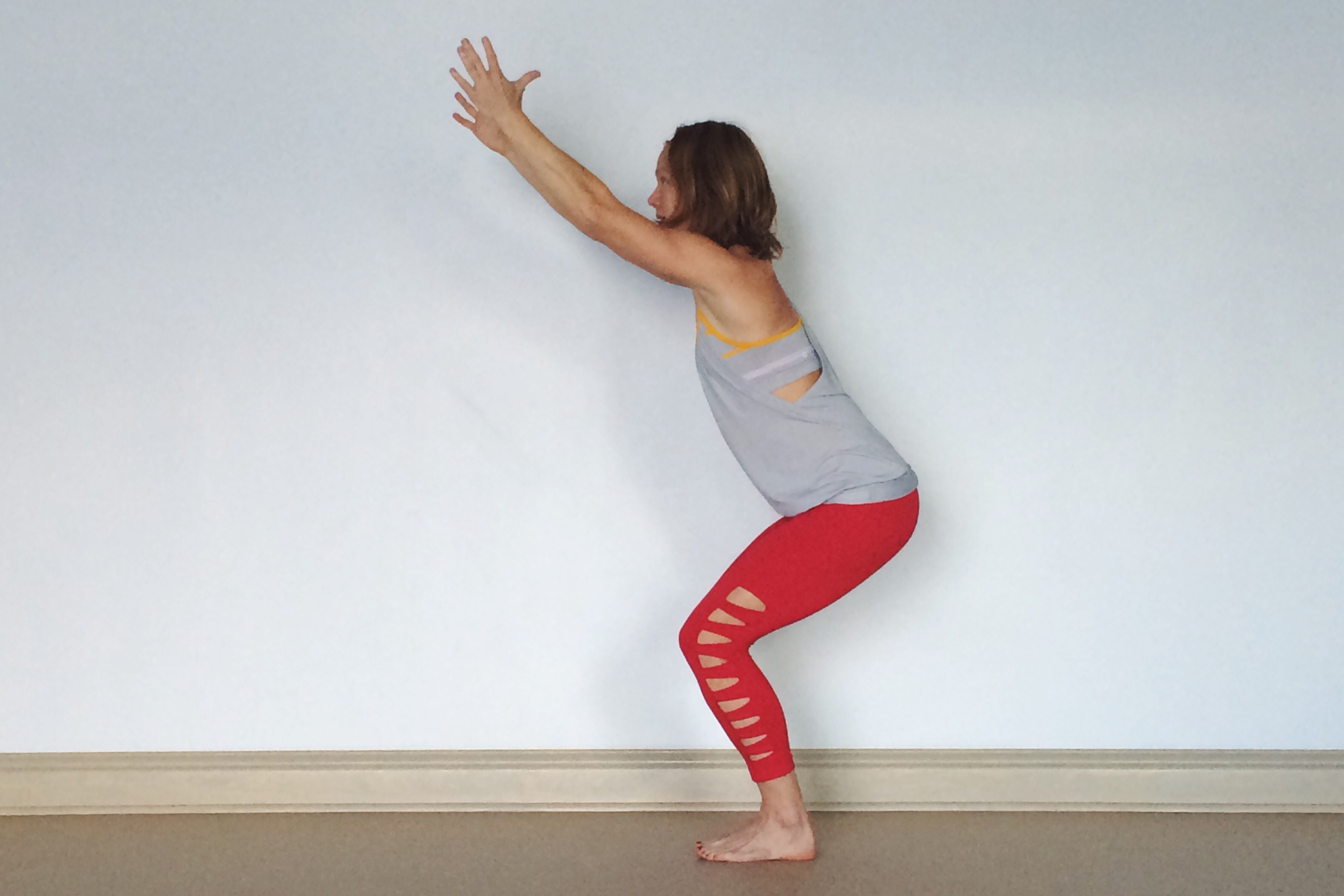 Chair Pose Yoga. At the same time, this standing pose builds core strength by the nature of the balance position involved. Place your hands on your knees or the tops of your thighs.